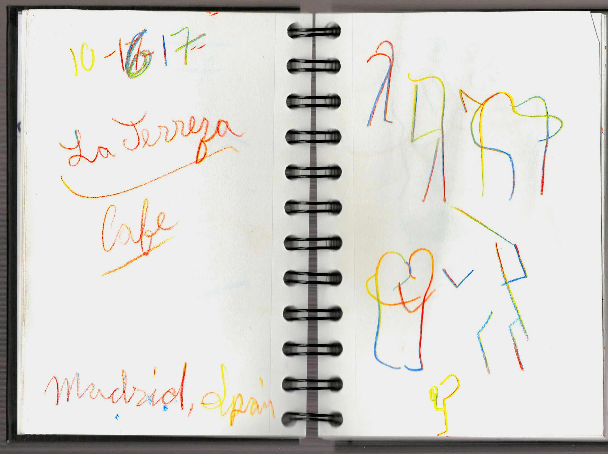 We’re sitting at a park cafe at the largest park in magnificent Madrid overlooking the large central pond. People are paddling row boats. People are walking past. Somalian street vendors ran by with their sacks of goods. Police soon followed. A clarinet player plays middle eastern ballads. A man sells bracelets. A pigeon finally settled on his lightpost. A ram in a gold cloak waits for money to do whatever it is he does for turistas.
